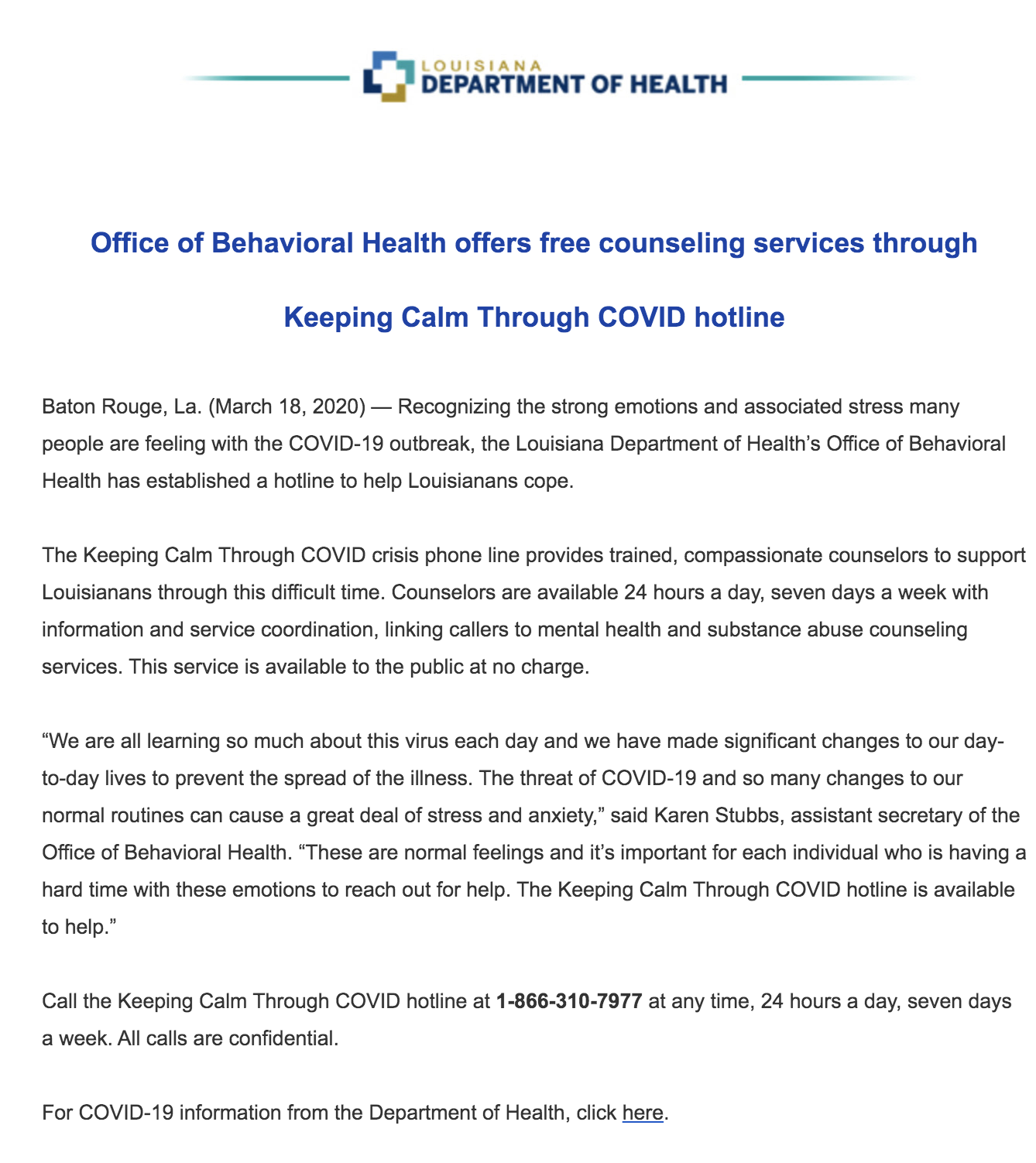 LA Department of Health